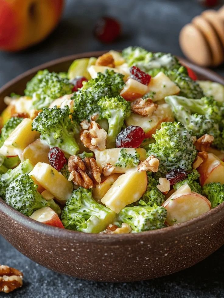 Apple, broccoli,carrot, walnut,Raisins mix in honey & cream